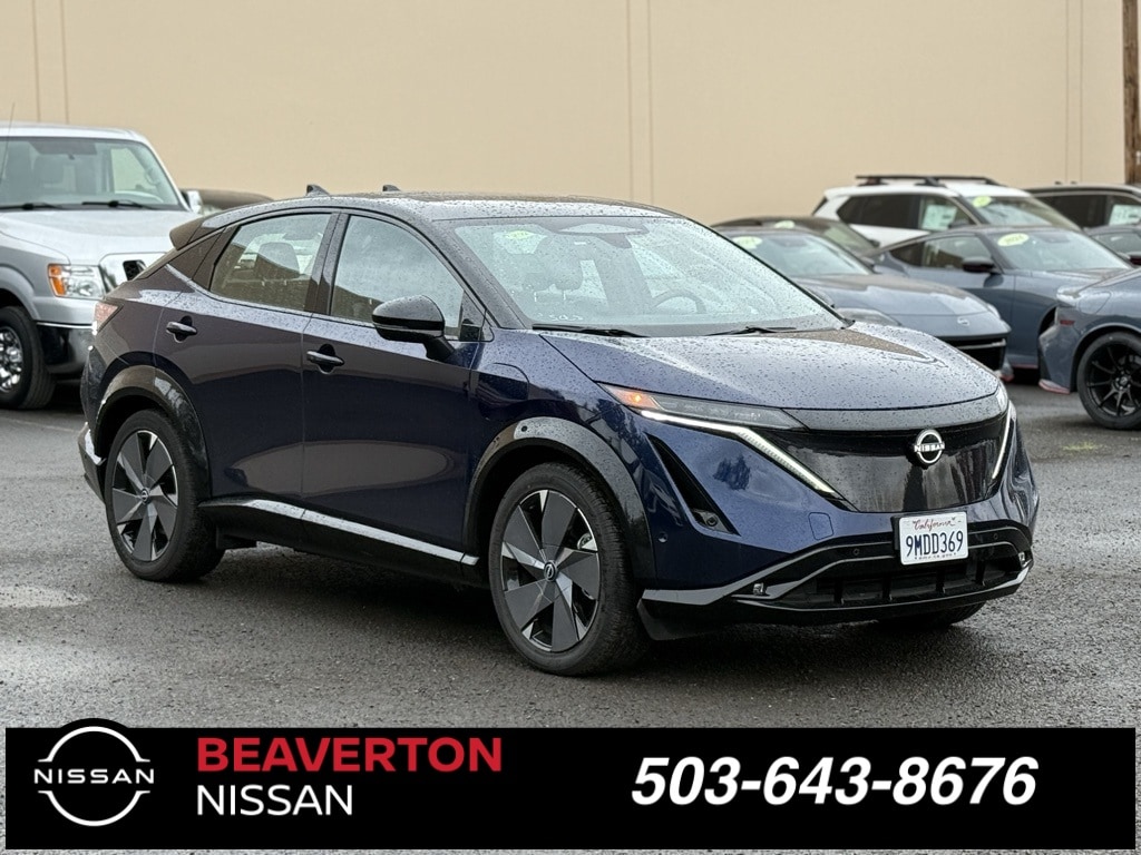 Recent Arrival! 2023 Nissan Ariya PLATINUM+ e-4ORCE 4D Sport Utility Deep Ocean Blue Pearl/Black Diamond Pearl AWD Electric Motor 89/84 City/Highway MPG