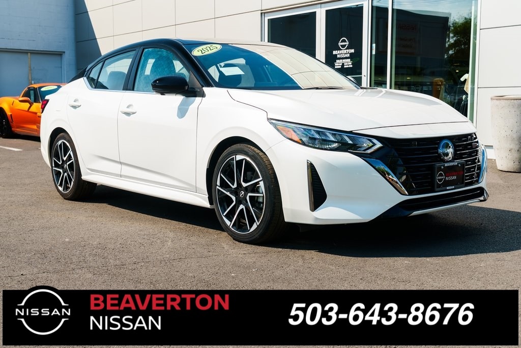Beaverton Nissan surpassed the standard by demonstrating unrivaled integrity and professionalism. We constantly shop the market to offer you the most competitive price upfront! Our expert service technicians inspect each vehicle before entering the showroom. We specialize in Nissan, INFINITI, Toyota, Hyundai, Lexus, BMW, Mercedes, Audi, Subaru and more. Beaverton Nissan works with many local clients from Nike, Adidas, Intel, Boeing Co, Columbia Sportswear, Freightliner, Legacy Health Systems, Providence Health Systems, OHSU, Tektronix, and others. We appreciate the opportunity to support our community. Not all new vehicle sales at MSRP. Prices do not include additional dealer accessories, fees and costs of closing, including government fees and taxes, any finance charges, any dealer documentation fees, any emissions testing fees or other fees. All prices, specifications and availability subject to change without notice. Contact dealer for most current information. SR Premium Package (6-Way Power Driver's Seat, Bose Premium Audio System w/8 Speakers, Intelligent Around View Monitor (I-AVM), Leather Heated Steering Wheel, Leatherette Seat Trim, NissanConnect Services, Power Sliding Glass Moonroof w/Tilt Feature, Sunvisors w/Illuminated Vanity Mirrors, and Wi-Fi Hotspot), CVT with Xtronic, Sport Cloth, 18" Alloy Wheels, 2-Tone Premium Paint, 4-Wheel Disc Brakes, 8 Speakers, ABS brakes, Air Conditioning, Alloy wheels, AM/FM radio: SiriusXM, Auto High-beam Headlights, Automatic temperature control, Blind Spot Warning, Brake assist, Bumpers: body-color, Carpeted Floor Mats w/Trunk Mat, Clear Rear Bumper Protector, Delay-off headlights, Door Sill Plates, Driver door bin, Driver vanity mirror, Dual front impact airbags, Dual front side impact airbags, Electronic Stability Control, Four wheel independent suspension, Front anti-roll bar, Front Bucket Seats, Front Center Armrest, Front dual zone A/C, Front reading lights, Fully automatic headlights, Heated door mirrors, Heated Front Bucket Seats, Heated front seats, Illuminated entry, Knee airbag, Leather Shift Knob, Low tire pressure warning, Map Pocket Lighting, Nissan USB Charging Cable Set, NissanConnect featuring Apple CarPlay and Android Auto, Occupant sensing airbag, Outside temperature display, Overhead airbag, Overhead console, Panic alarm, Passenger door bin, Passenger vanity mirror, Power door mirrors, Power steering, Power windows, Radio data system, Radio: AM/FM w/RDS/MP3/Aux-In, Rear anti-roll bar, Rear Parking Sensors, Rear seat center armrest, Rear side impact airbag, Rear window defroster, Remote keyless entry, Security system, Speed control, Speed-sensing steering, Split folding rear seat, Spoiler, Sport Cloth Seat Trim, Steering wheel mounted audio controls, Tachometer, Telescoping steering wheel, Tilt steering wheel, Traction control, Trip computer, Turn signal indicator mirrors, and Variably intermittent wipers. Price includes: $500 - Nissan MY25 Sentra Bonus Cash. Exp. 11/03/2025